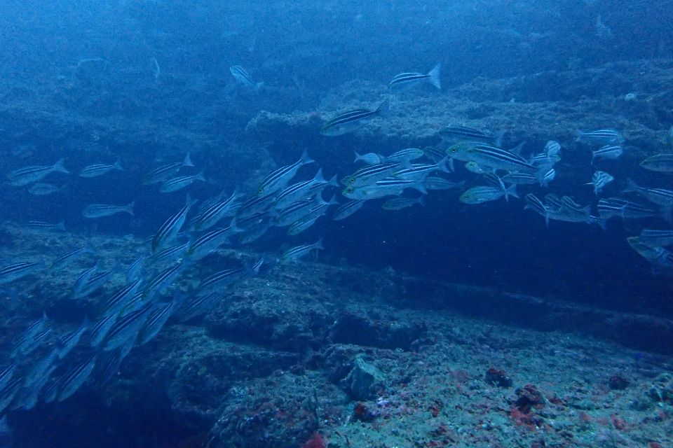 イサキ群れ、ネンブツダイ群れ、シラコダイ群れ、