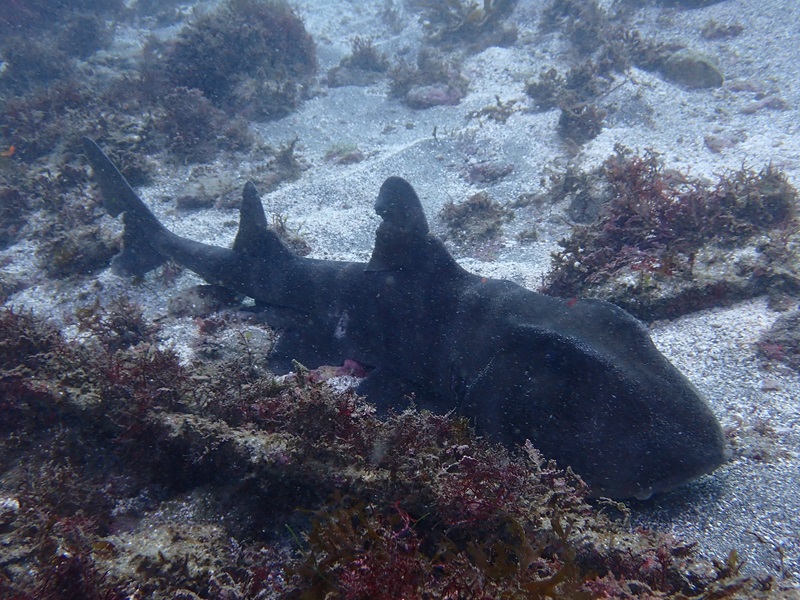 ビーチではガイドロープ沿いにネコザメが寝てました。