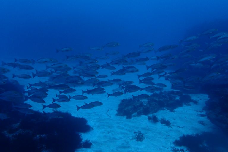 イサキ群れ、ネンブツダイ群れ、イシダイ、ヒゲダイ、